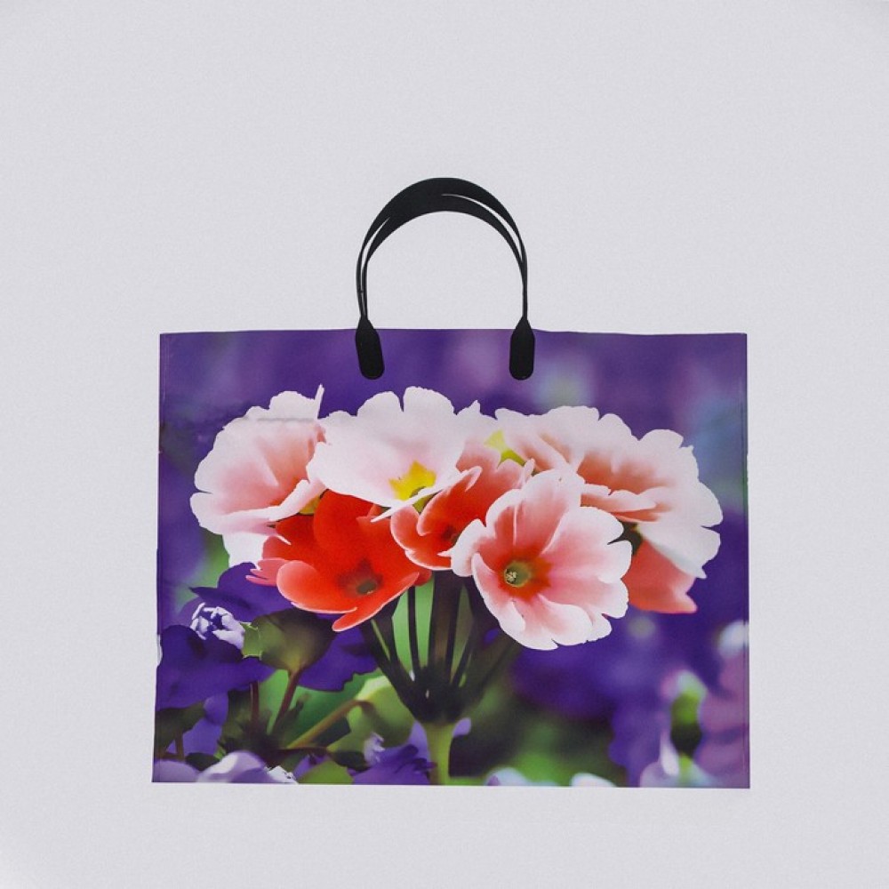 Пакет полиэтиленовый с пластиковой ручкой, благодаря ручкам пакет служит дольше. Прочный и надежный с оригинальным рисунком.